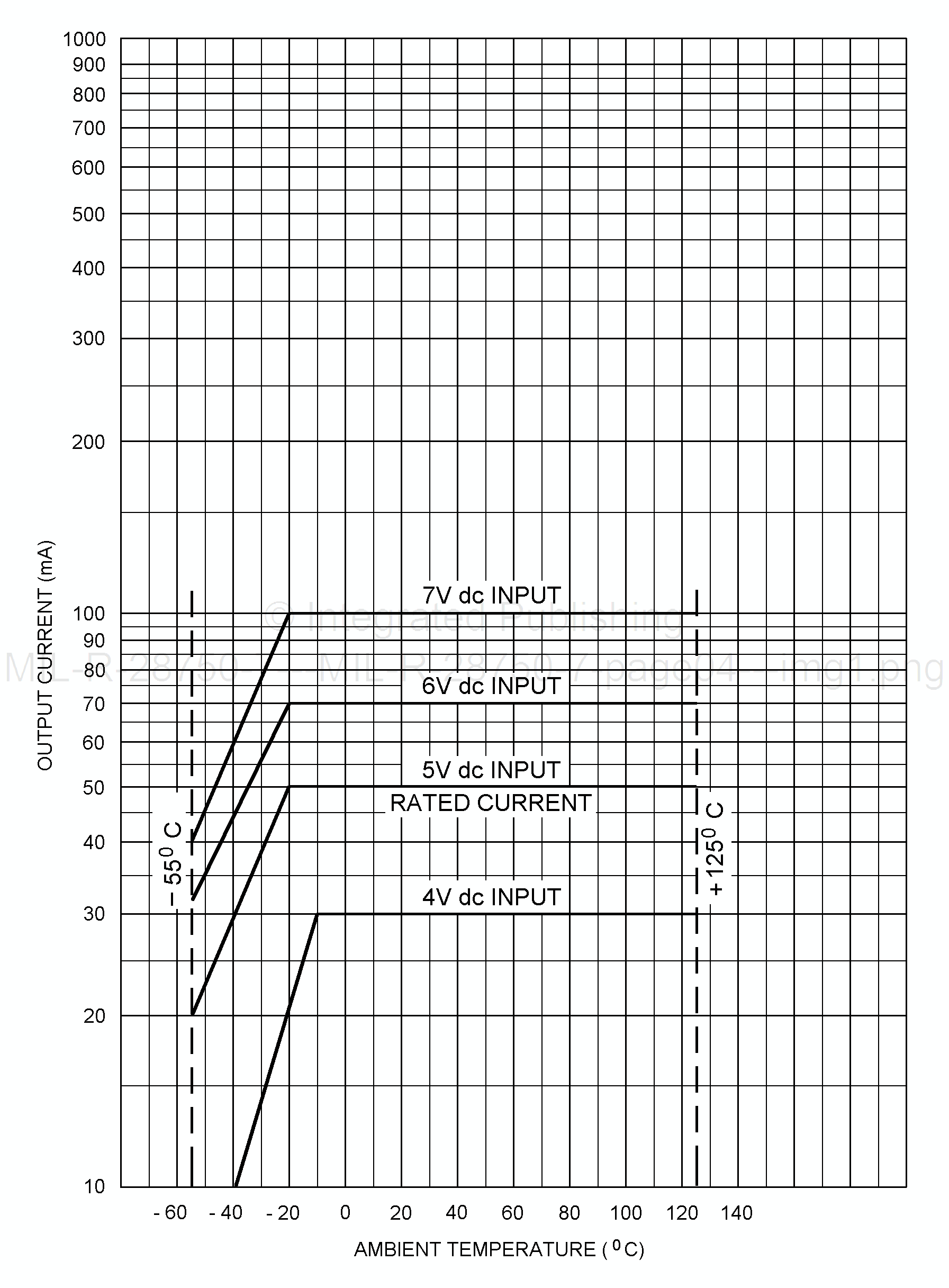 FIGURE 2. Output current versus input control voltage and ambient temperature. QUALIFICATION INSPECTION (reduced testing):
