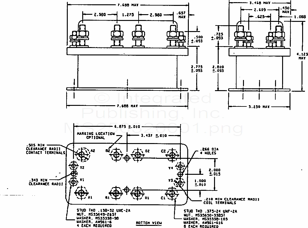 MS25032 Relay, Electromagnetic, 200 Amperes, 2 Pdt, (N.O.) Type Ii, Nonhermetically Sealed, Mechanically Interlocked